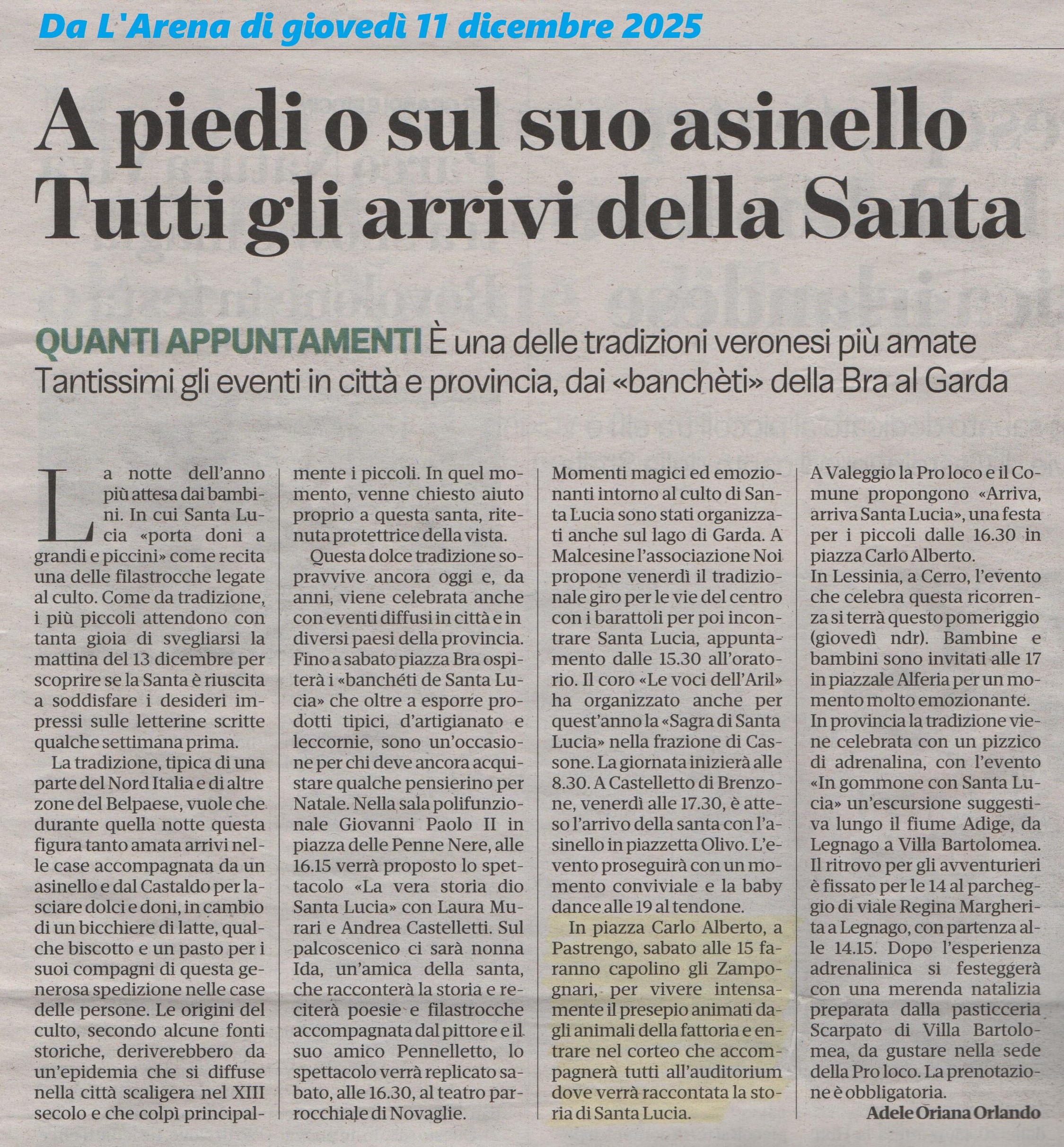 A piedi o sul suo asinello. Tutti gli arrivi della Santa - da L'Arena giovedì 11 dicembre 2025