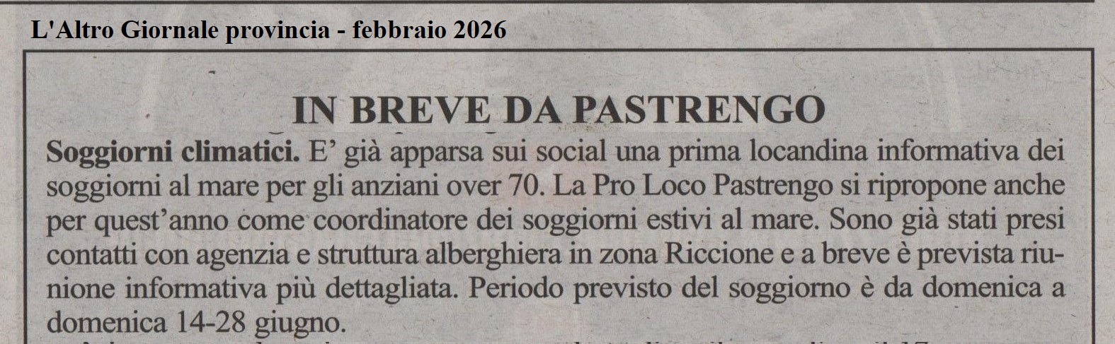 Soggiorni climatici - da L'Altro Giornale - Febbraio 2026